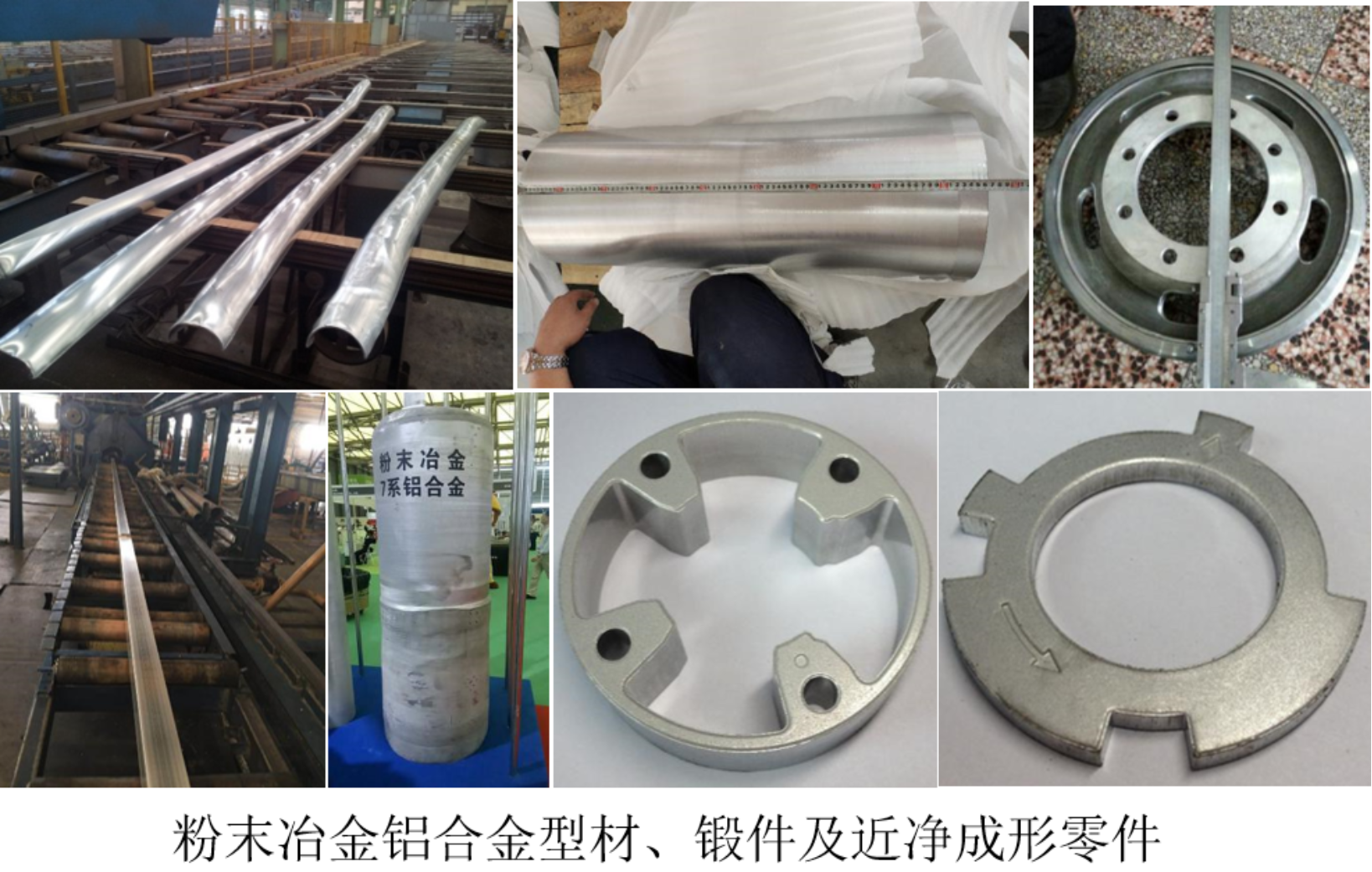 研发室多年来一直从事铝及铝合金粉末制备、先进成形、烧结技术研究工作,并已形成了具有独立自主知识产权的完备核心技术体系。突破超细无偏析铝合金粉末制备、大规格复杂形状冷等静压成形、活化烧结致密化以及塑性加工等关键技术,开发出多品种大规格高强及超高强粉末冶金铝合金型材、板材、锻件等高端铝合金产品。粉末冶金铝及铝合金烧结态组织均匀且致密,晶粒细小,晶粒尺寸为10~20μm;热变形加工后,晶粒尺寸为1~5μm。其中粉末冶金2000系铝合金抗拉强度突破600MPa,屈服强度高达465MPa,延伸率为9.8%;同时,粉末冶金7000系铝合金抗拉强度突破800MPa,屈服强度高达770MPa,延伸率仍维持在8%,较传统熔铸铝合金,力学性能提高15%以上。同时,研发室采用压制、活化烧结技术制备了复杂形状的粉末冶金铝合金零件,包括汽车轴承盖、CVT变速箱转子等。已申请相关发明专利20余项,发表相关学术论文10余篇。