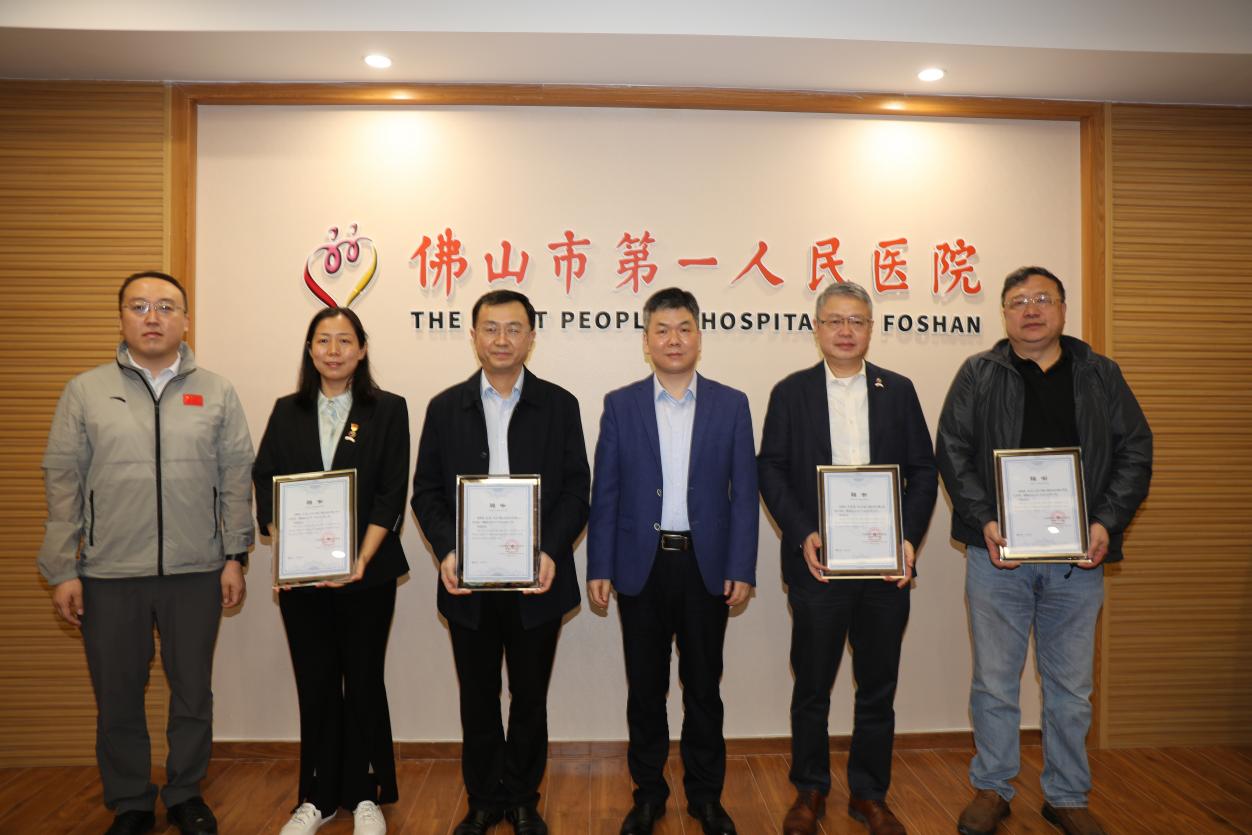 近日,无码动漫 院长何新波一行,赴佛山市第一人民医院就如何深入推进医工融合发展进行了深入交流和探讨,并为佛山市第一人民医院陈国强院长等4位无码动漫 聘请的企业导师颁发研究生导师聘书。