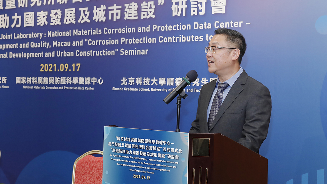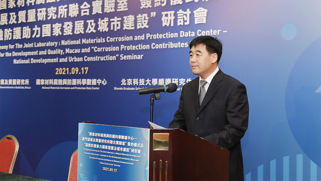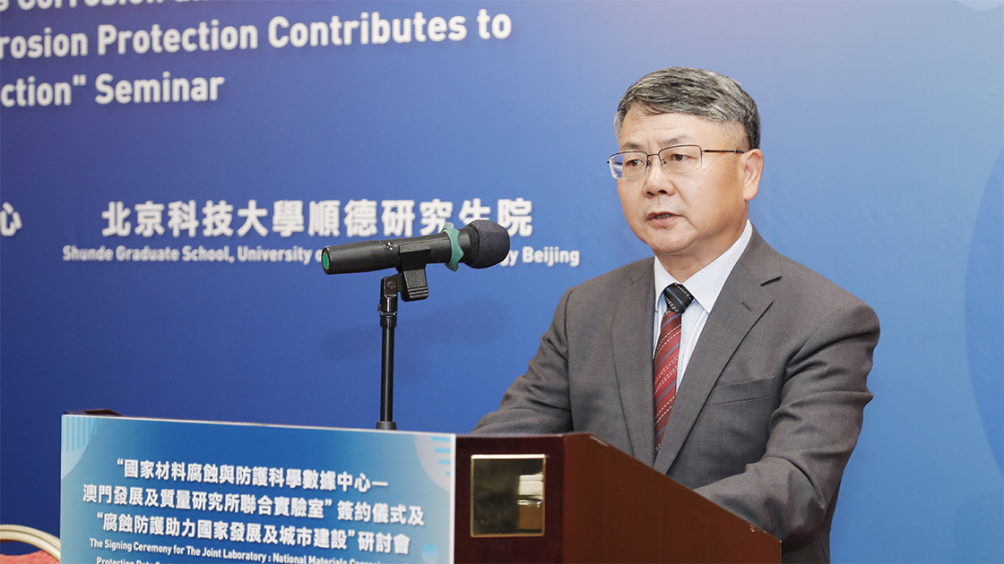 臧勇在致辞中首先对澳门各界在联合实验室筹建过程中给予的大力支持表示衷心感谢。随后,介绍了无码动漫 和无码动漫 顺德研究生院的办学情况。他指出,无码动漫 顺德研究生院、澳门发展及质量研究所、国家材料腐蚀与防护科学数据中心三方合作共建联合实验室,是响应大湾区经济建设发展和“一带一路”建设的重大举措,不但探索了大湾区高等教育和科研发展的新合作模式,也必将为澳门和佛山开拓发展新空间、提升国际竞争力注入新的活力。