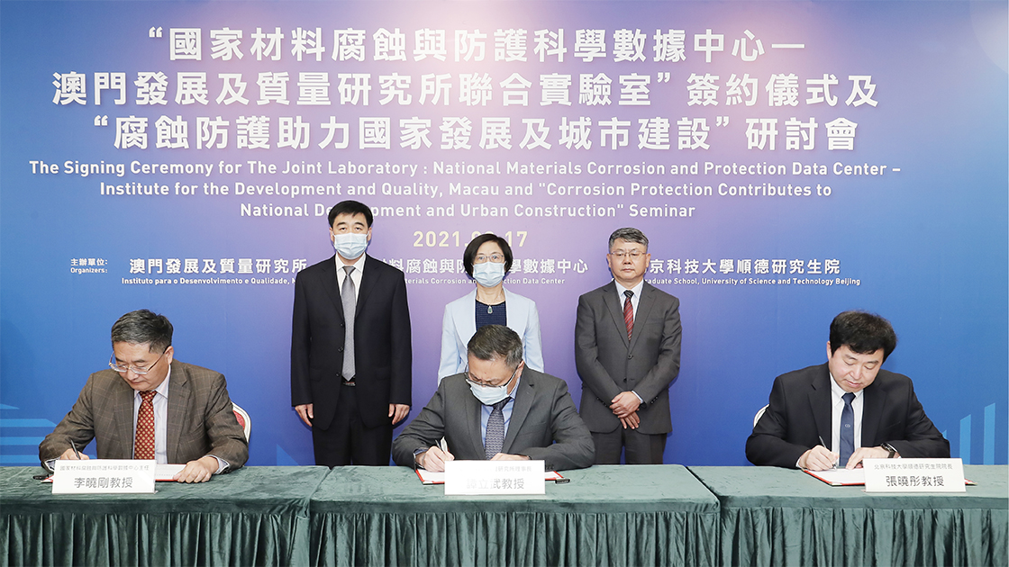 本次合作协议的签署是在国家推进“粤港澳大湾区”和“一带一路”建设重大战略背景下的强强联合。此次合作立足深化京、粤、澳合作和科技创新,将充分发挥各自优势,凝聚国内外创新资源,为澳门和广东高质量发展注入新的动能。以此次合作为契机,将重点贯彻国家重大战略部署,并结合地方社会经济发展实际需求,开展全方位、深层次、宽领域、高水平的合作,共同培养材料腐蚀与防护领域的教学和科技创新拔尖人才。通过开展前沿核心技术创新与科研合作,共同解决国家战略和当地企业发展需求中的重大科学技术难题,不断提升社会服务能力,积极探索澳门特色的产学研之路,合力打造全国校地合作新典范。同时,将积极促进科技经济融合发展,实现腐蚀与防护领域相关技术的科研成果转化,解决材料腐蚀这一制约“一带一路”建设的重要技术难题,促进可持续发展,共同创建一流的腐蚀与防护领域的产学研创新基地,推动创造更大的社会价值与经济效益。