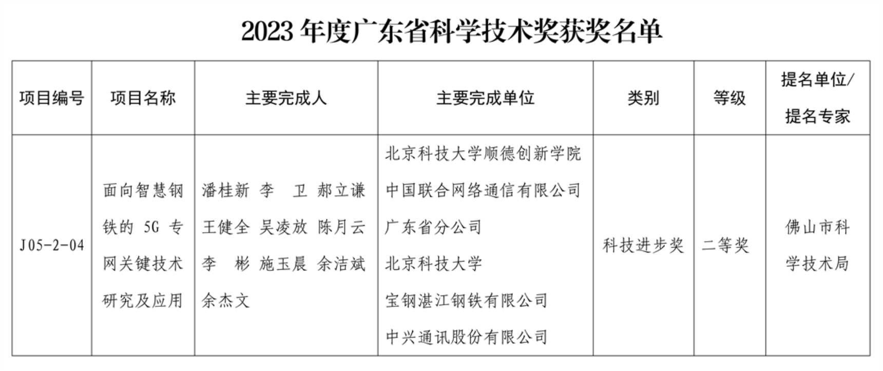 10月17日,广东省科技大会在广州召开,会上颁发了2023年度广东省科学技术奖,无码动漫 作为第一单位申报的《面向智慧钢铁的5G专网关键技术研究及应用》,获得广东省科技进步奖二等奖。