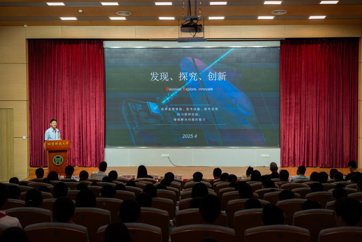 原党委书记杨德斌教授为青少年带来别开生面的创新启蒙课。杨教授通过生动的案例与通俗易懂的语言,详细阐述了如何培养观察事物、思考问题、探究原理的习惯和技能,进而提升解决问题的能力。讲座过程中,同学们全神贯注,积极与杨教授互动交流,现场不时响起热烈的掌声。