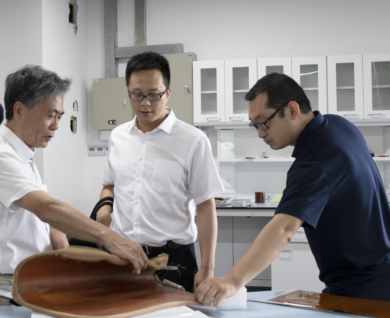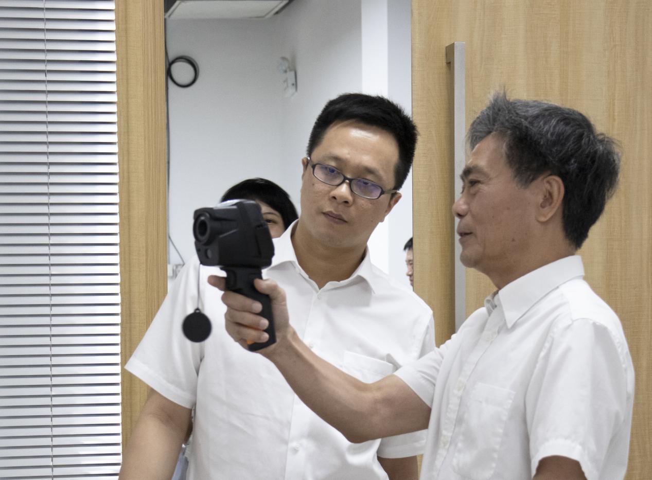 座谈会结束后,教育局领导一行参观了顺德研究生院绿色创新中心。刘焕明教授向到访人员介绍了自主研发的石墨烯膜发热毛巾架等科技创新产品。